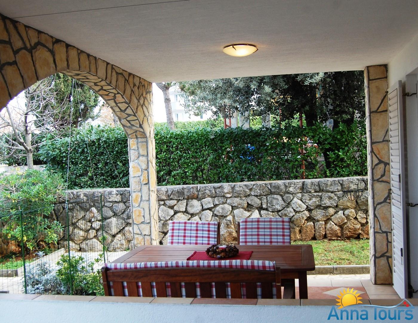 Apartman Cora za 3 do 4 osobe nalazi se u prizemlju kuće. Apartman Cora najveći je apartman u objektu i sastoji se od velike natkrivene terase s vrtnim namještajem, spavaće sobe s bračnim krevetom, kuhinje (s perilicom posuđa), kupaonice s kadom te velike prostorije u kojoj su smještena dva pomoćna ležaja, stol za četvero i TV-SAT. Apartman ima osiguran bežični internet i parkirno mjesto te se u ljetnoj kuhinji, smještenoj do apartmana, na raspolaganju gostima nalazi roštilj i perilica rublja.