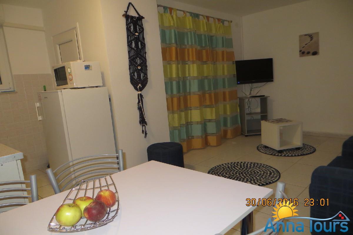 Die 45 m2 grosse Ferienwohung besteht aus Wohnzimmer, Schlafzimmer mit Ehebett, Kueche, Essraum, Baezimmer und Balkon.