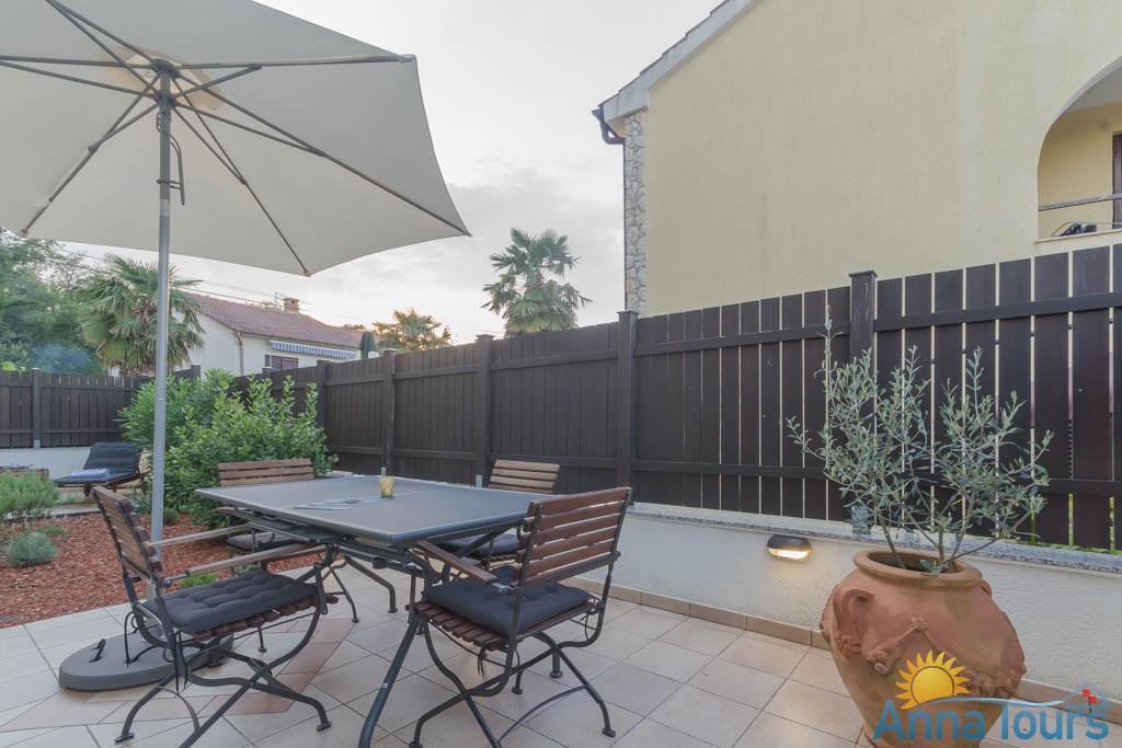Apartman Intim čine 2 spavaće sobe od kojih jedna ima bračni ( 140 cm ), a druga 2 jednostruka ležaja, dnevni boravak, blagovaonica, dobro opremljena kuhinje, kupaonica s tuš kabinom, mala natkrivena terase i 60m2 velika nenatkrivena terasa s predivnim vrtom.